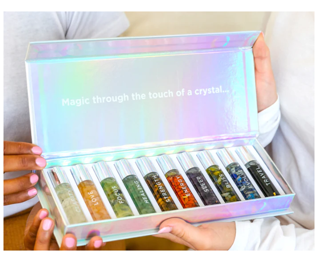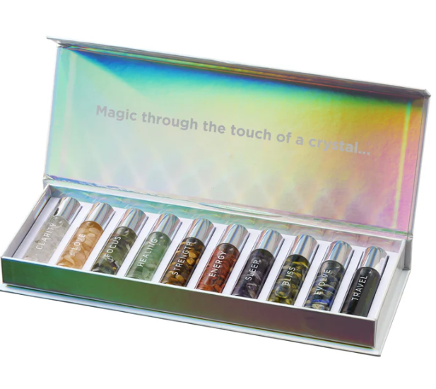 Our complete set of Crystal Infused Essential Oil Rollers.